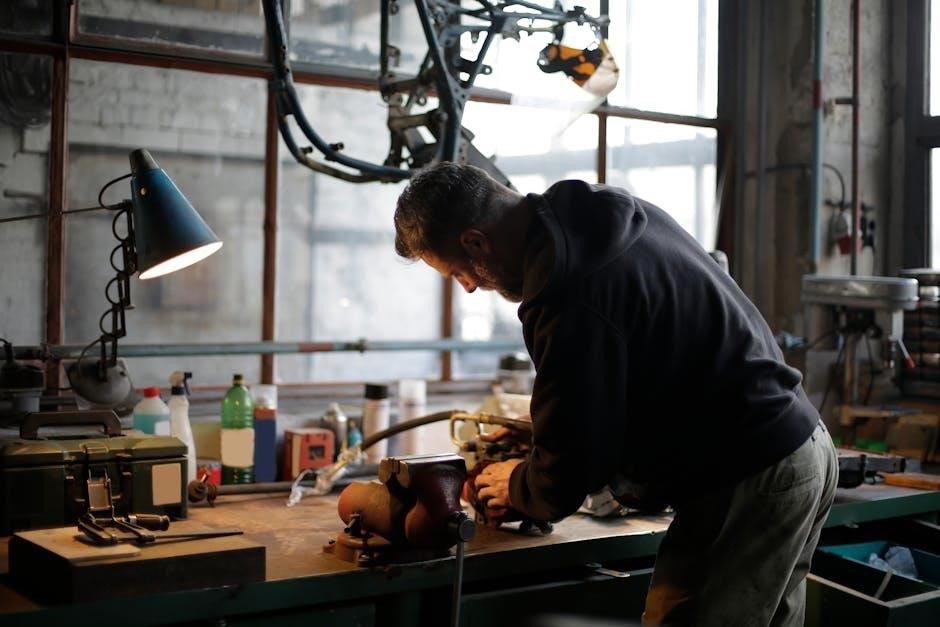 Diagnosing issues with the Cub Cadet 243cc engine involves systematic troubleshooting to identify root causes․ Start with visual inspections of fuel lines, air filters, and spark plugs for damage or blockages․ Use a compression tester to check for low compression, which may indicate worn piston rings or head gasket issues․ Spark testers can verify if the spark plug is firing properly․ Listen for unusual noises, such as knocking or sputtering, which may signal internal engine problems․ Refer to the manual for specific diagnostic steps and error codes․ Utilize basic tools like multimeters or pressure gauges to test electrical and fuel systems․ Accurate diagnostics ensure effective repairs and prevent further damage․